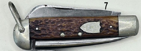 1. 4 blade, bone handle, etched 1st Class in shield, Eagle Right,